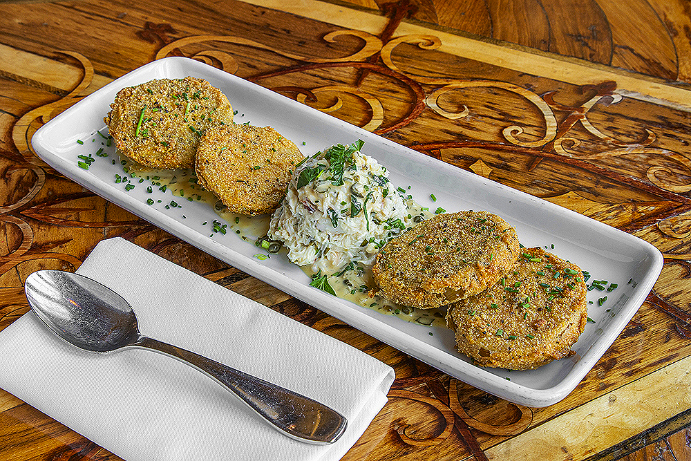 flank steak in a jalisco marinade, caramelized onions, french onion au jus, mama lil’s arugula-parsley accompaniment